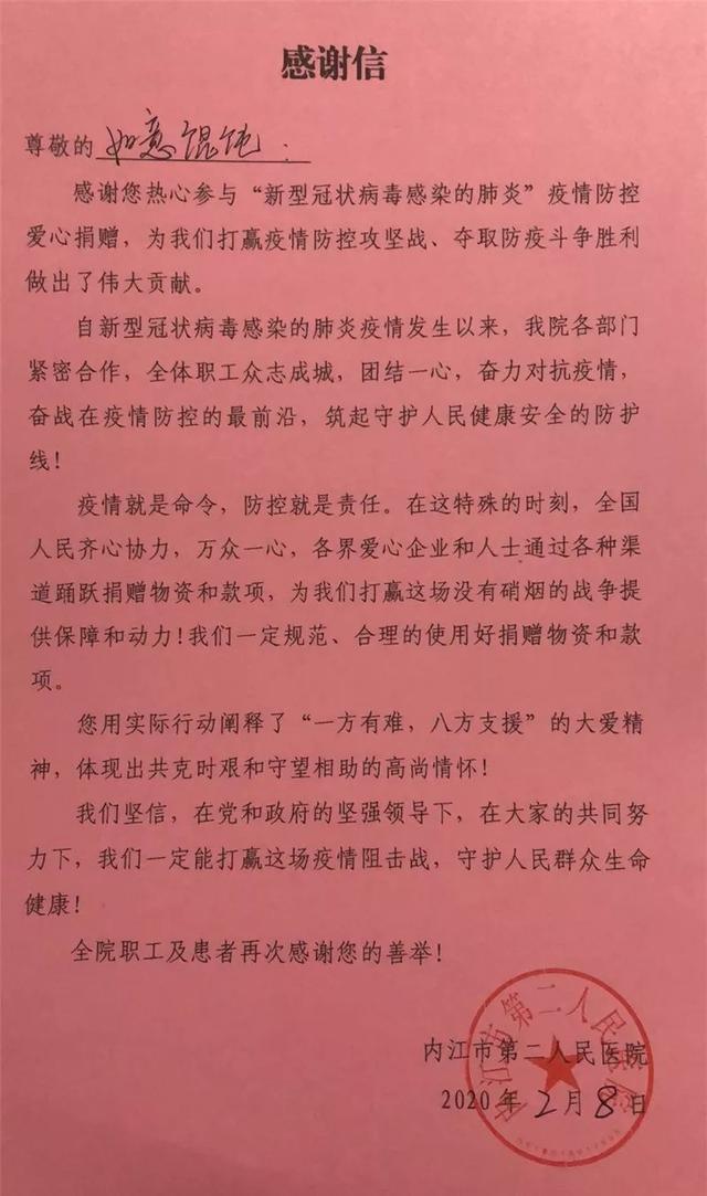 收到来自内江市第二人民医院的感谢信,市民刘若玲女士不仅开心,还有为疫情防控工作出力的责任感。